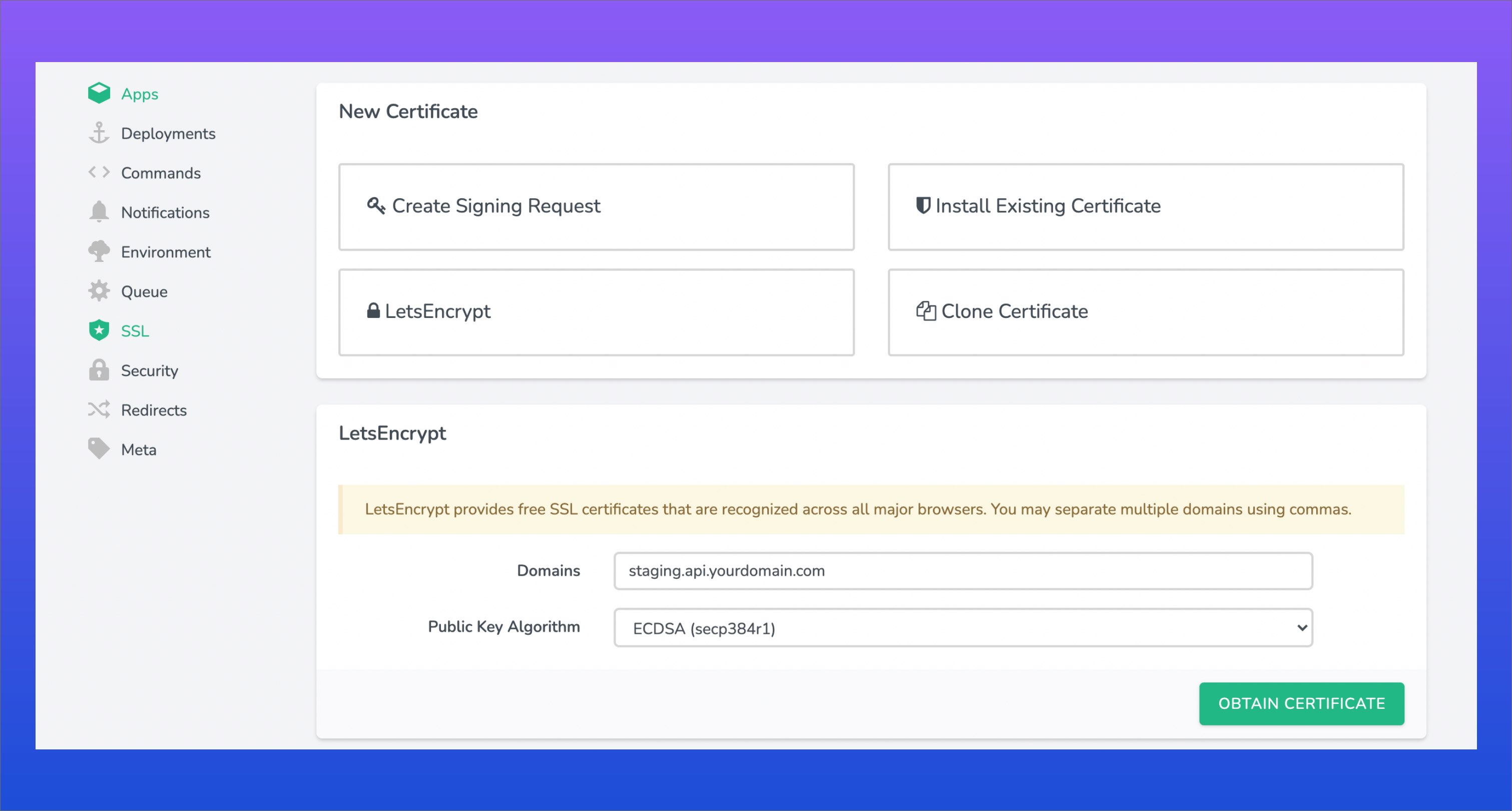 - Enter Your site Domain i.e (staging.api.yourdomain.com)