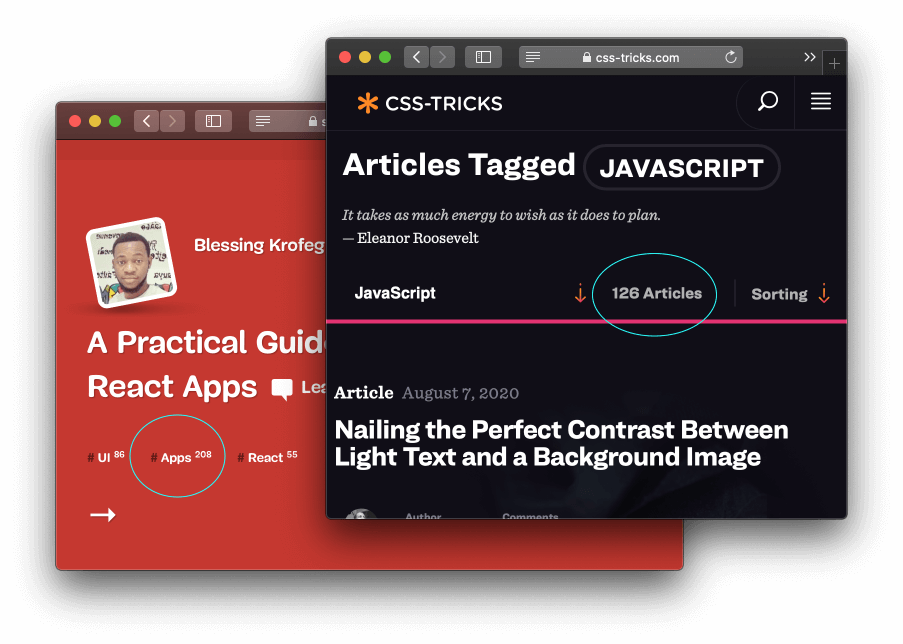 Many popular blogs shows the count of posts for a category or a tag.